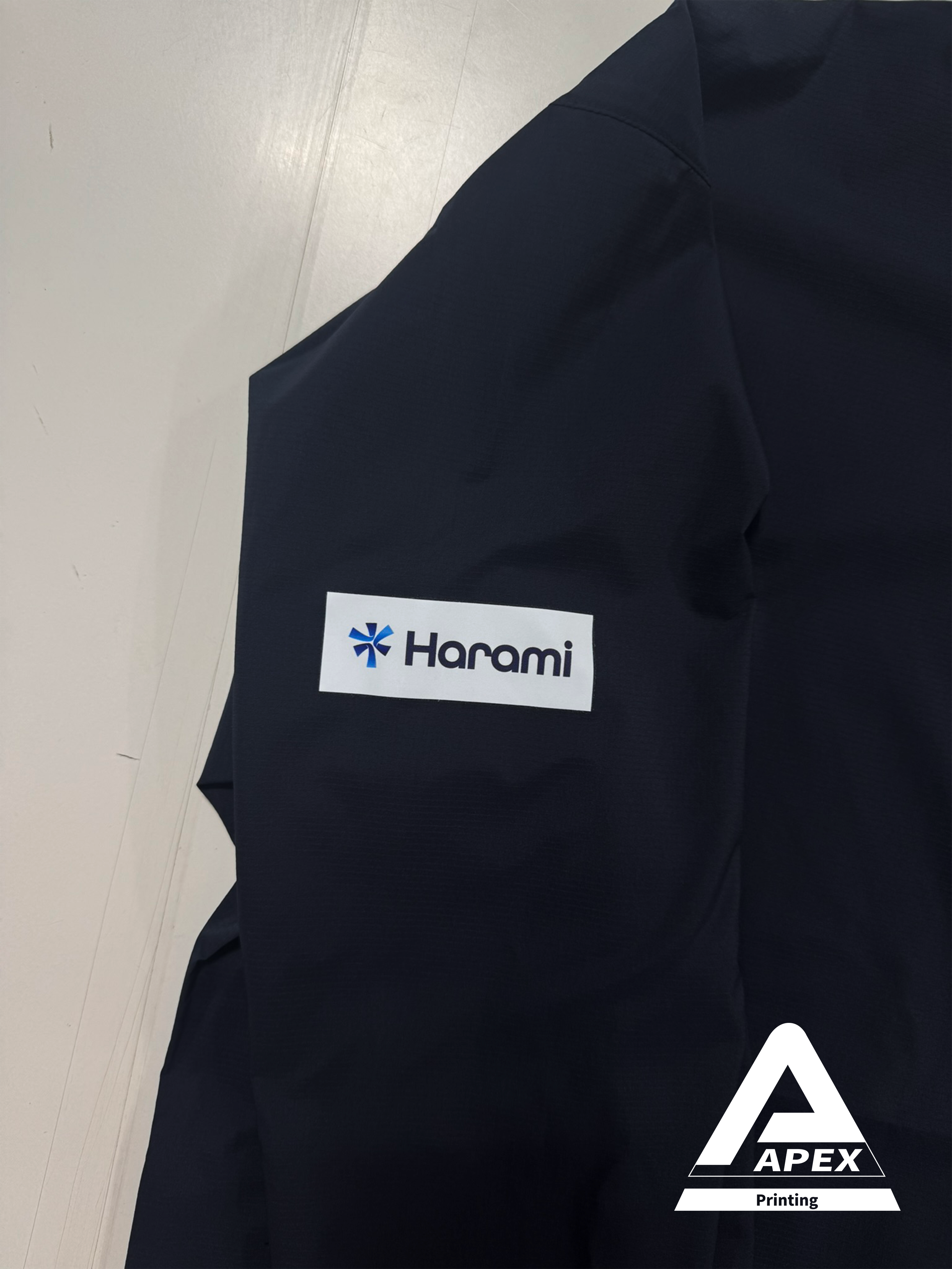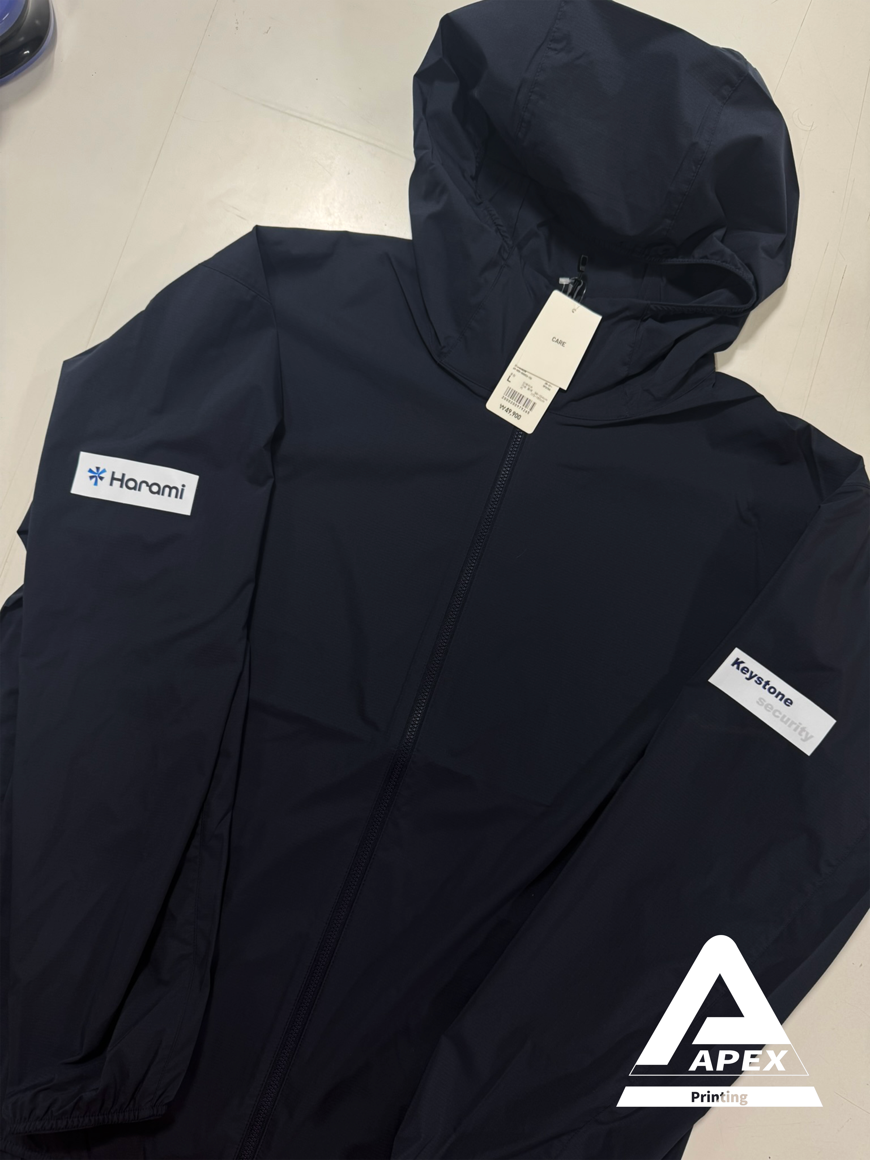 이번은 CARE 바람막이에 양쪽 소매 로고를 넣어 제작한 사례로,